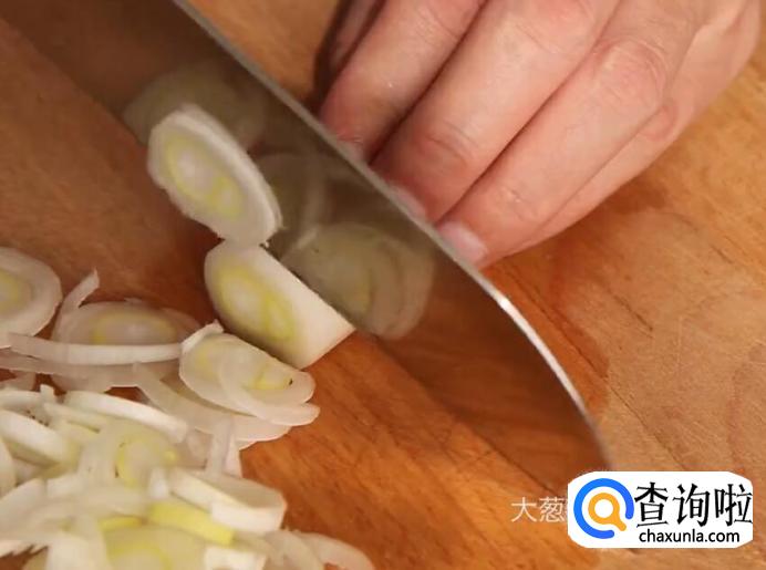 然后将大葱切圈。