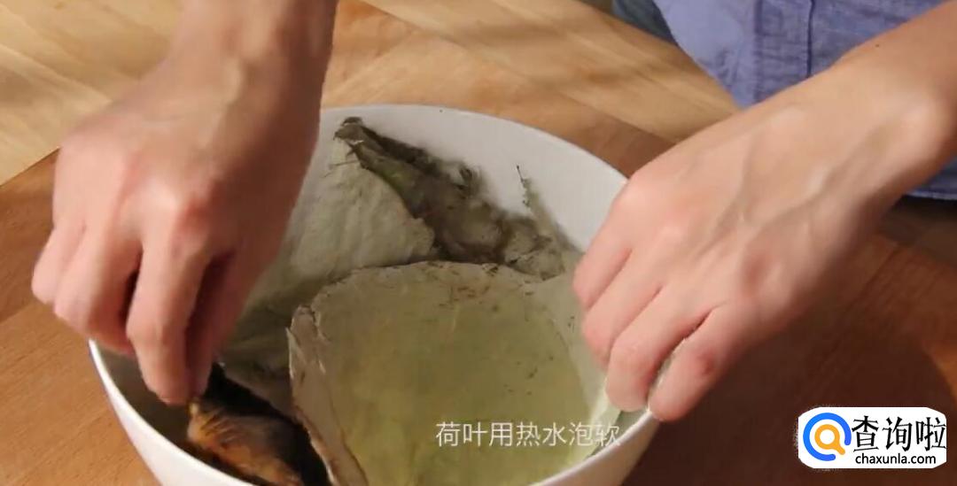 荷叶用热水泡软。