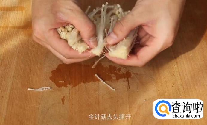 金针菇去头撕开。