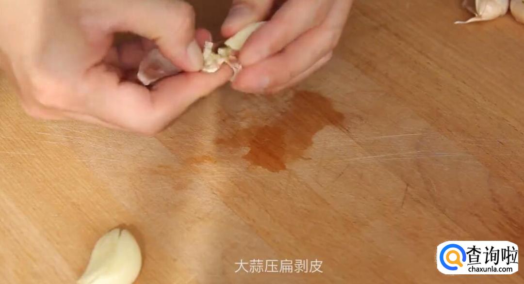 红辣椒切段,大蒜压扁剥皮。