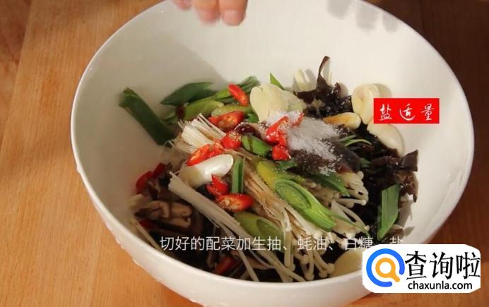 腌制配菜:生抽15克、蚝油15克、白糖10克、盐适量