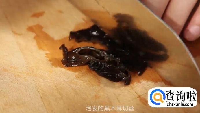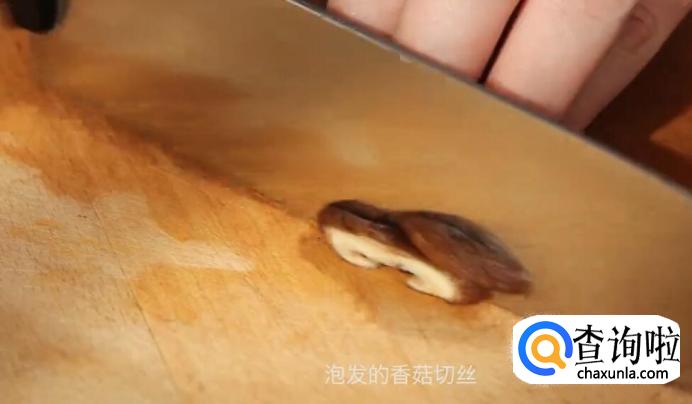 泡发的木耳和香菇切丝。