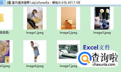 不过图片数量很多的话,这样操作很浪费时间;这种情况我们需要给刚才的Excel文件重命名为.zip的后缀名,然后文件就变成了压缩格式,如下图二;