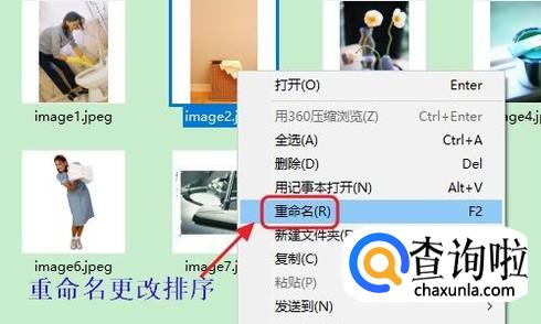 不过有细心的朋友可能发现了,刚才压缩包里面的图片名为都是系统根据图片的先后顺序自定义的,比如image1/image2...然后粘贴到新的文件夹以后也是这样排序的,如果我们想要更改排序方式,可以手动在压缩包里进行重命名;