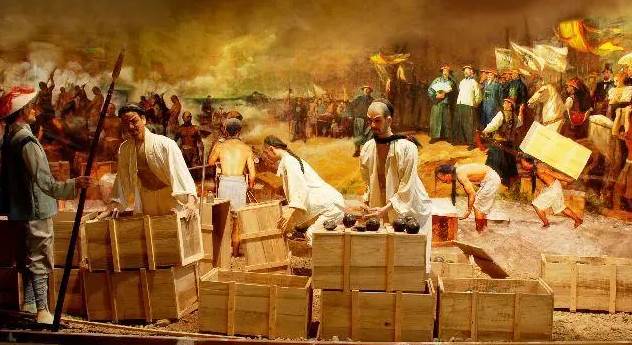 1839年6月3日(清宣宗道光十九年岁次己亥四月廿二),林则徐下令在虎门海滩当众销毁鸦片,至6月25日结束,共历时23天,销毁鸦片19187箱和2119袋,总重量2376254斤。