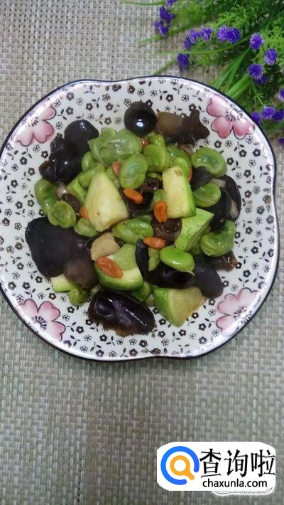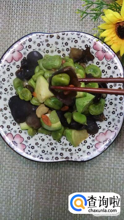 出锅装盘,就可以吃了,吃的时候可以将比较硬的蚕豆皮吐掉,很嫩的蚕豆,皮也可以吃的,美味的木耳炒蚕豆就做好了。