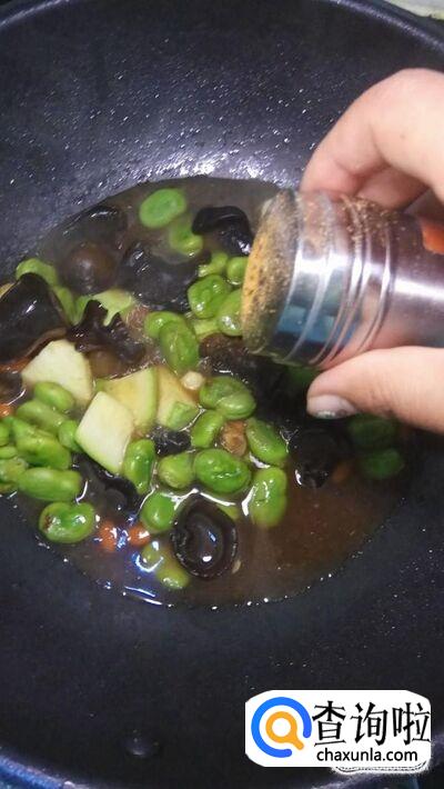 再放入适量五香粉和生抽,搅拌均匀。五香粉可以少放一些,不要放太多,以免影响蚕豆本身的香味,也可以不放。