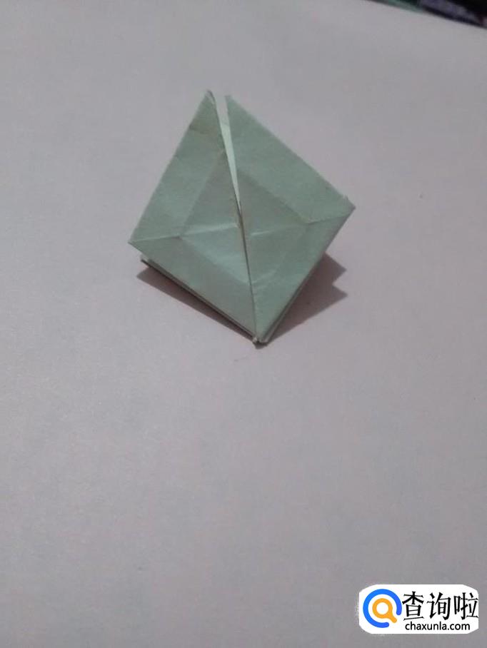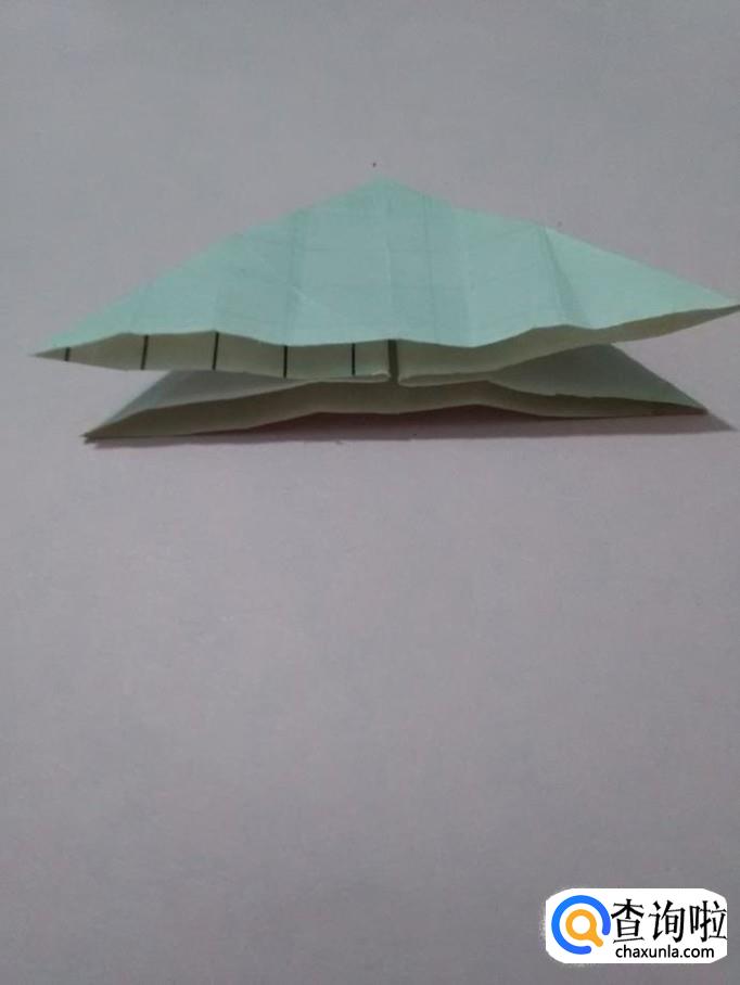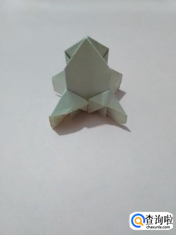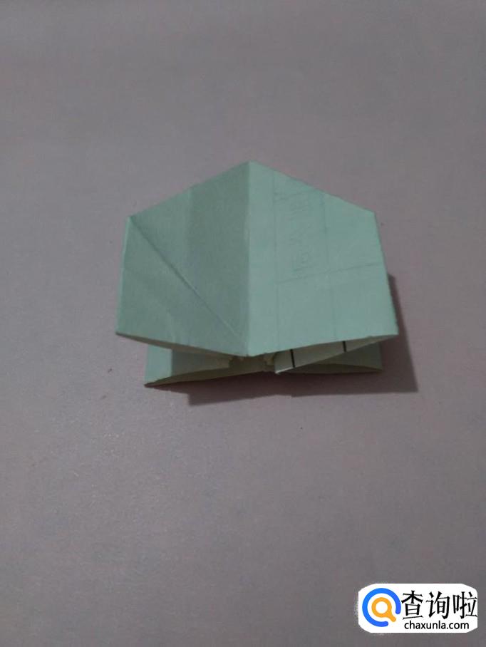 把中间的两个小角向两侧撑开,反面的两个小角也向两侧撑开。