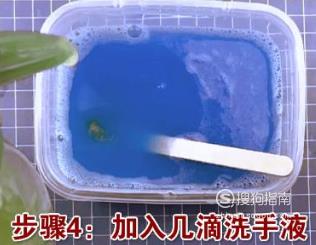 然后往碗中加入几滴洗手液,为了让水晶泥变得润滑不沾手。