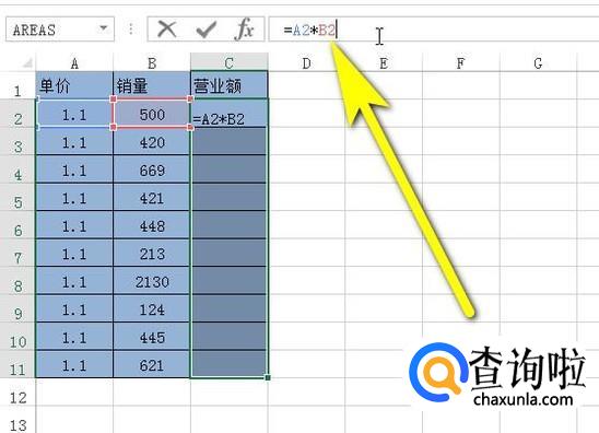 再在编辑栏中输入公式:=A2*B2;公式意思是A2的数值乘以B2的数值。