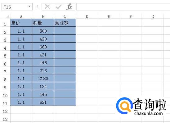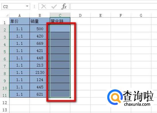 以下图表格数据为例演示操作方法。选中C2:C11这区域单元格。