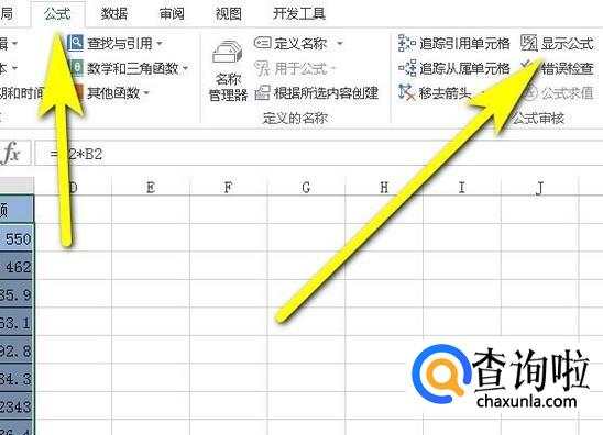 保持所有结果在选中的状态下,点击公式选项卡,再点:显示公式;如图所示。