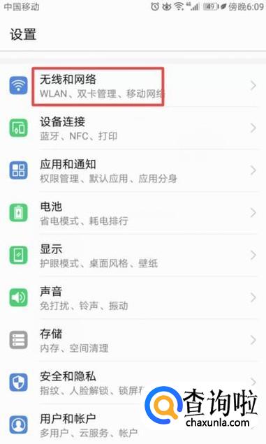 弹出的界面,我们点击无线和网络;
