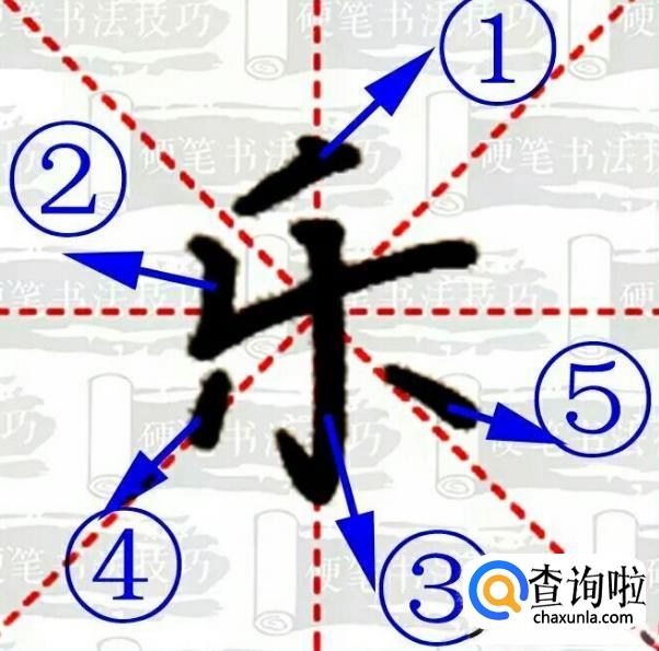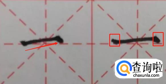 横。写“横”的时候,向右写时,略微向上抬15度左右就可以,前后还要有两处顿笔。