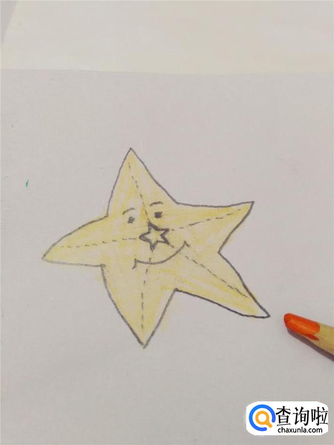 最后用桔黄色把海星涂上颜色,小海星就画完了。