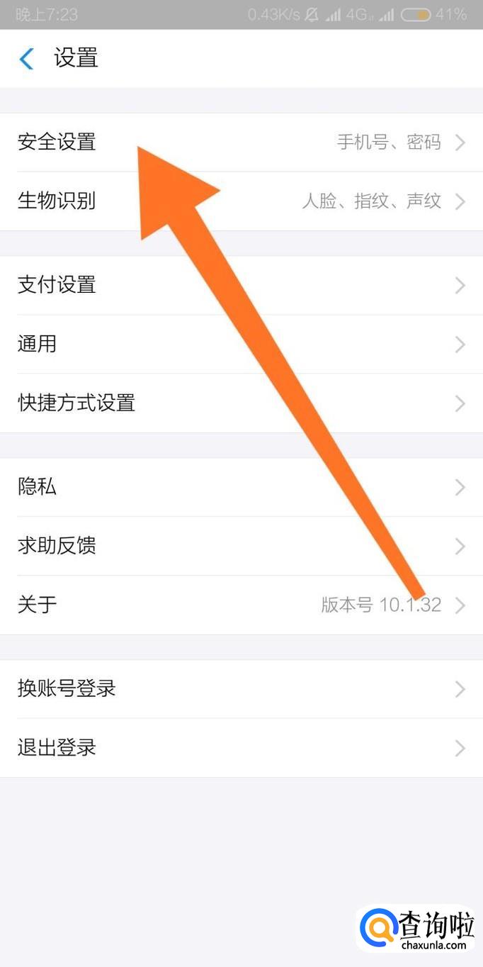 进入支付宝设置菜单页面后,再点击进入“安全设置”选项。