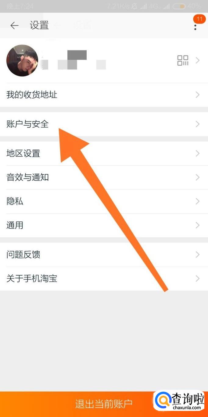 进入设置菜单页面后,再点击进入“账号与安全”设置选项。