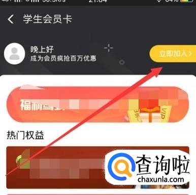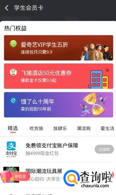 进入之后,点击图示位置,进入大学生认证页面,如图所示。