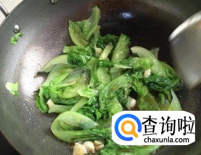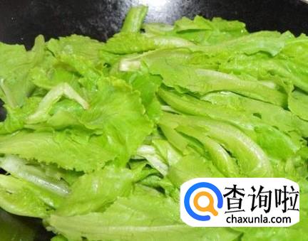 再放入蒜末、盐和蚝油,翻炒几下,就可以出锅了。炒生菜不要炒时间太长,否则太软,就不好吃了。