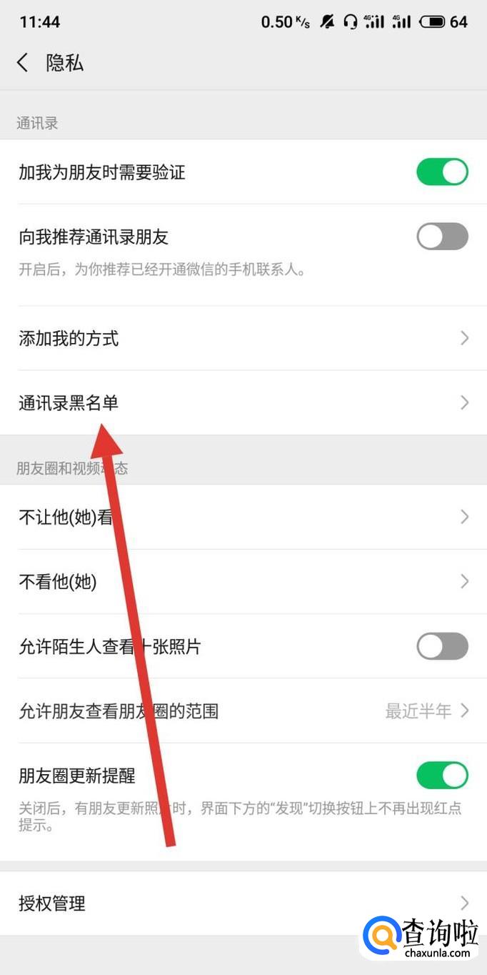 进入之后,点击“通讯录黑名单”,如图所示。