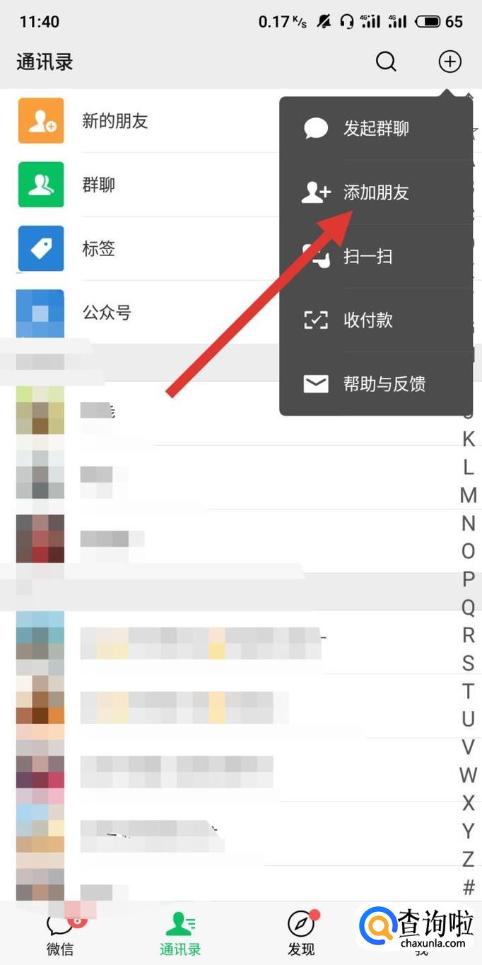 在微信通讯录页面,选择“添加朋友”,如图所示。