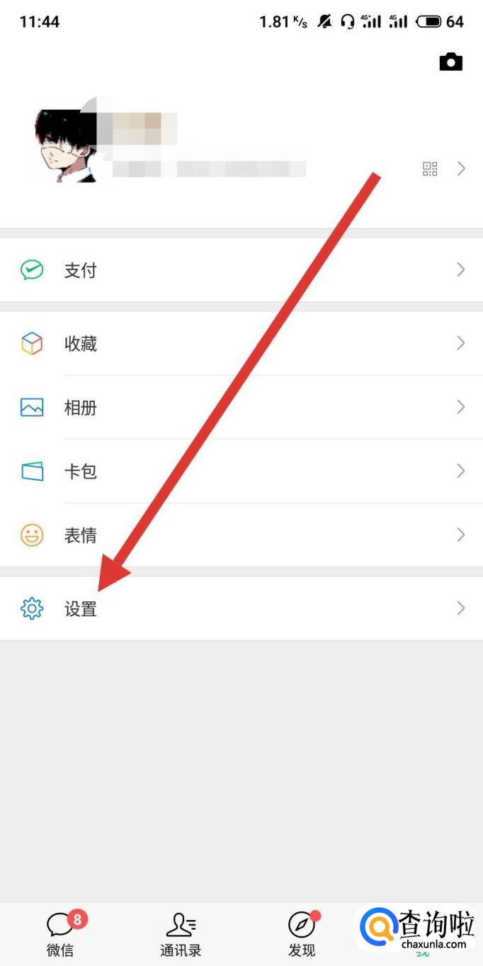 在微信“我”页面,点击“设置”,如图所示。