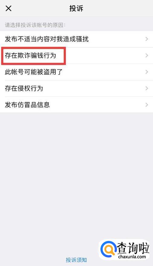 选择投诉的原因,这里选择“存在欺诈骗钱行为”。