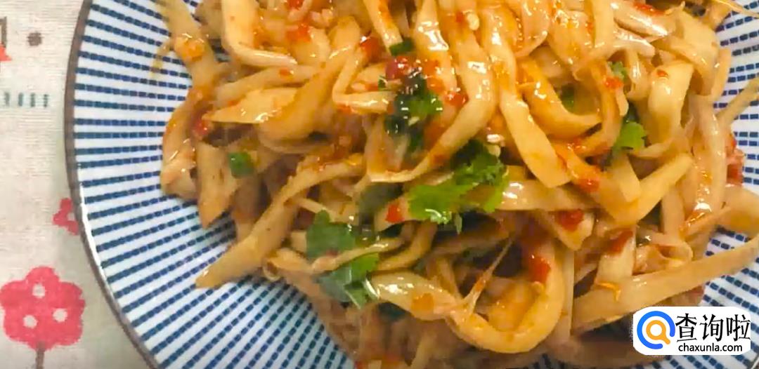 搅拌均匀后,凉拌杏鲍菇就做好了。