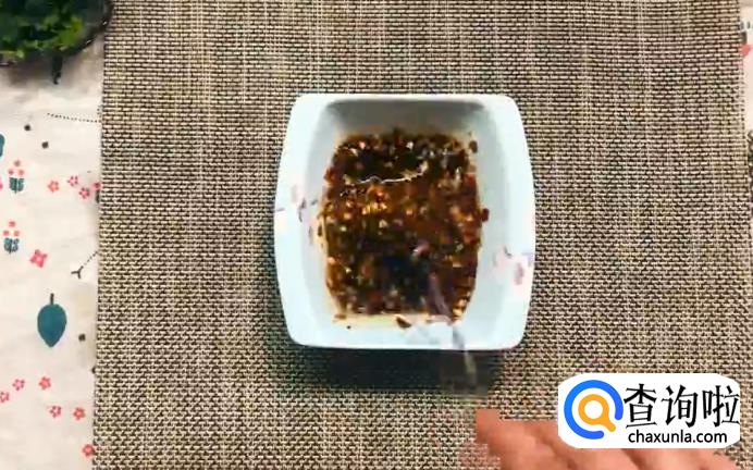 接着,拿一个小碗,加入盐、蒜末、辣椒面、生抽和香醋,然后将其搅拌均匀。