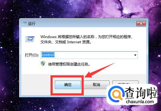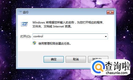 输入control,点击确定。
