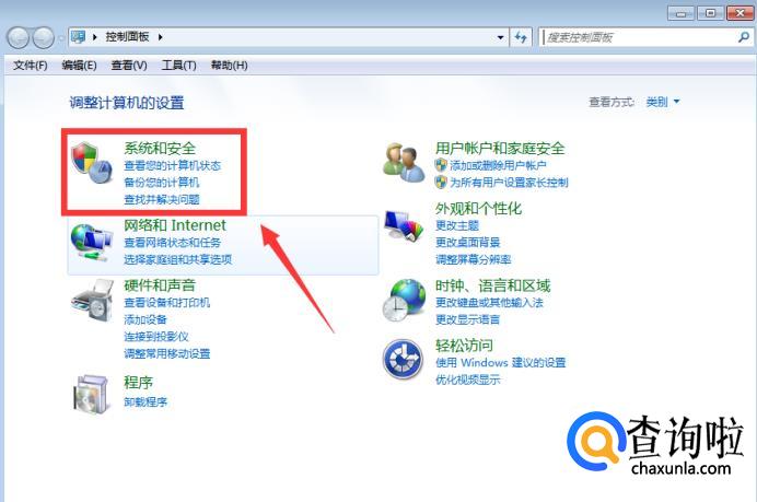 然后选择控制面板里的【系统和安全】。