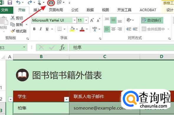 然后我们将照相机添加到右侧主选项卡,返回到表格,我们会在页面最上方看到照相机图标,如图二...