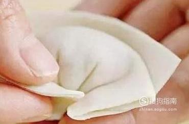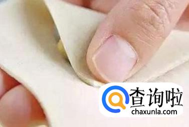 然后将馄饨皮的所有边缘握在一起,使其粘贴紧实即可。