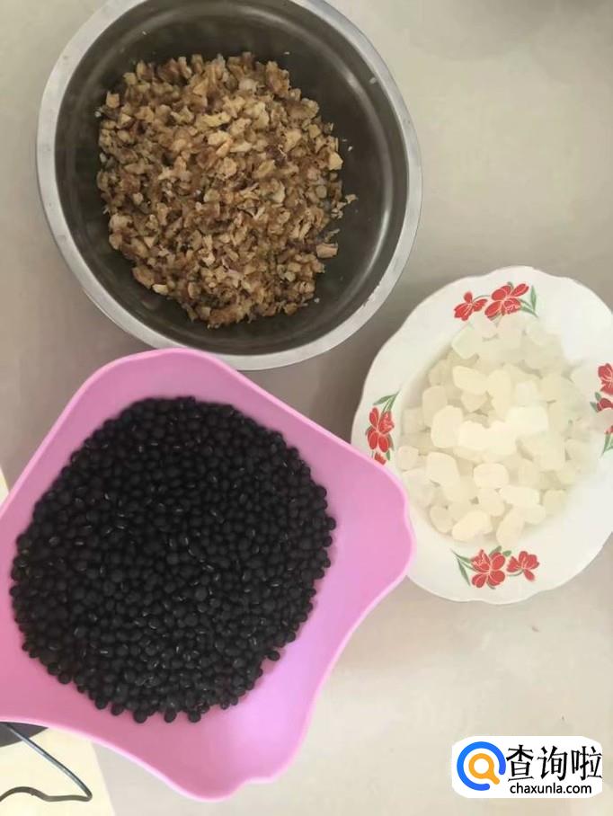 将当归、冰糖、黑豆一起放入不粘锅中,加水至淹没黑豆。