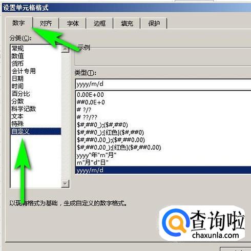 点开数字选项卡,如图所示,点击:自定义