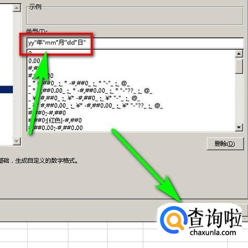 如果这个框中没有你想要的日期格式,那么,我们可以自己来设定,在编辑框内输入你想要的日期格式,再点确定即可,如图所示。