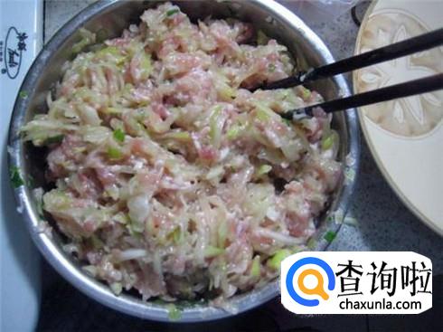 猪肉选择偏瘦的五花肉,放点葱姜剁成肉末,加上一点玉米胚芽油、生抽、食盐、味素调成肉馅。