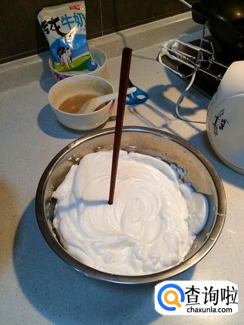 这个是一定需要打蛋器的,用筷子打的话打到那种程度估计就累瘫了。蛋清里面根据口味加上适当白糖,将蛋清打的能“竖筷子”的样子就可以。