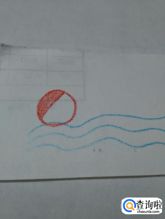 在海水上面,用红笔画一个圆形,表示人物的头。