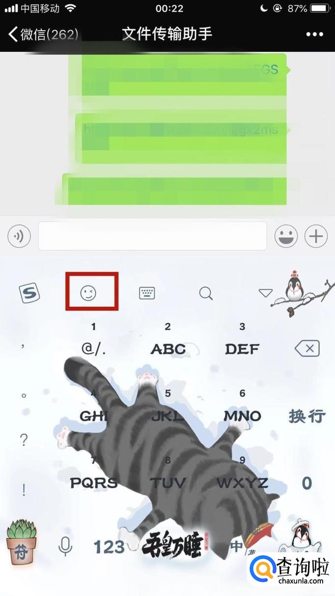 然后打开我们手机中的一个聊天对话框,并点击搜狗输入法上方的表情图标,如下图所示。
