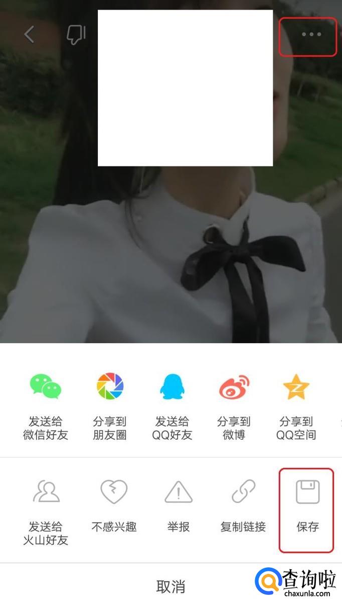 找一个喜欢的视频,点击进入之后,如图所示,点击右上角图标,弹出选择菜单,我们选择“保存”,就能存到我们的手机相册里面。中间会有一个下载的等待时间,看进度圈就可以。