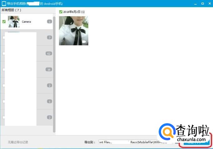 之后我们打开手机QQ,连接之后,就会出现如图所示的弹出框,只需把视频选中,点击“导出”就可以存到电脑了。