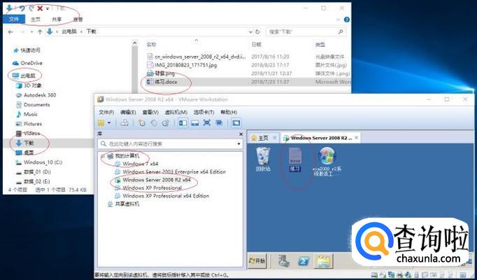如图所示,唤出"文件资源管理器"程序窗口。选中宿主机需拷贝复制的文档,按住鼠标左键拖拽宿主机文档到虚拟机。