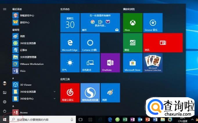 启动Windows 10操作系统,如图所示。点击任务栏"开始"按钮,用于弹出开始菜单。