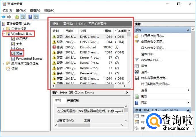弹出的界面,我们点击Windows日志,我们可以点击系统,我们就可以看到相应的系统的日志了。