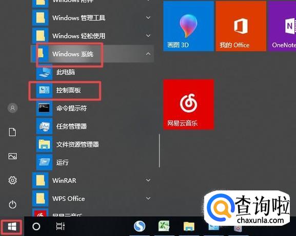 首先,我们点击电脑左下角的微软按钮,弹出的界面,我们下滑中间的界面,找到windows系统,点击打开它,弹出的界面,我们点击控制面板;