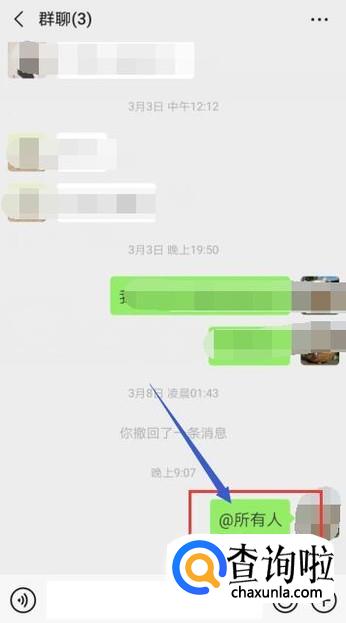 最后,我们回到微信群聊界面,会发现你编辑的信息@给了所有人。