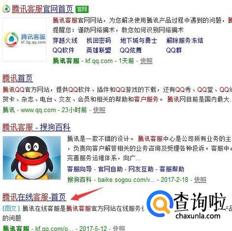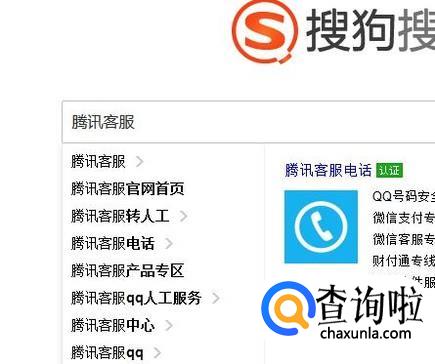 使用搜狗搜索搜索腾讯客服。