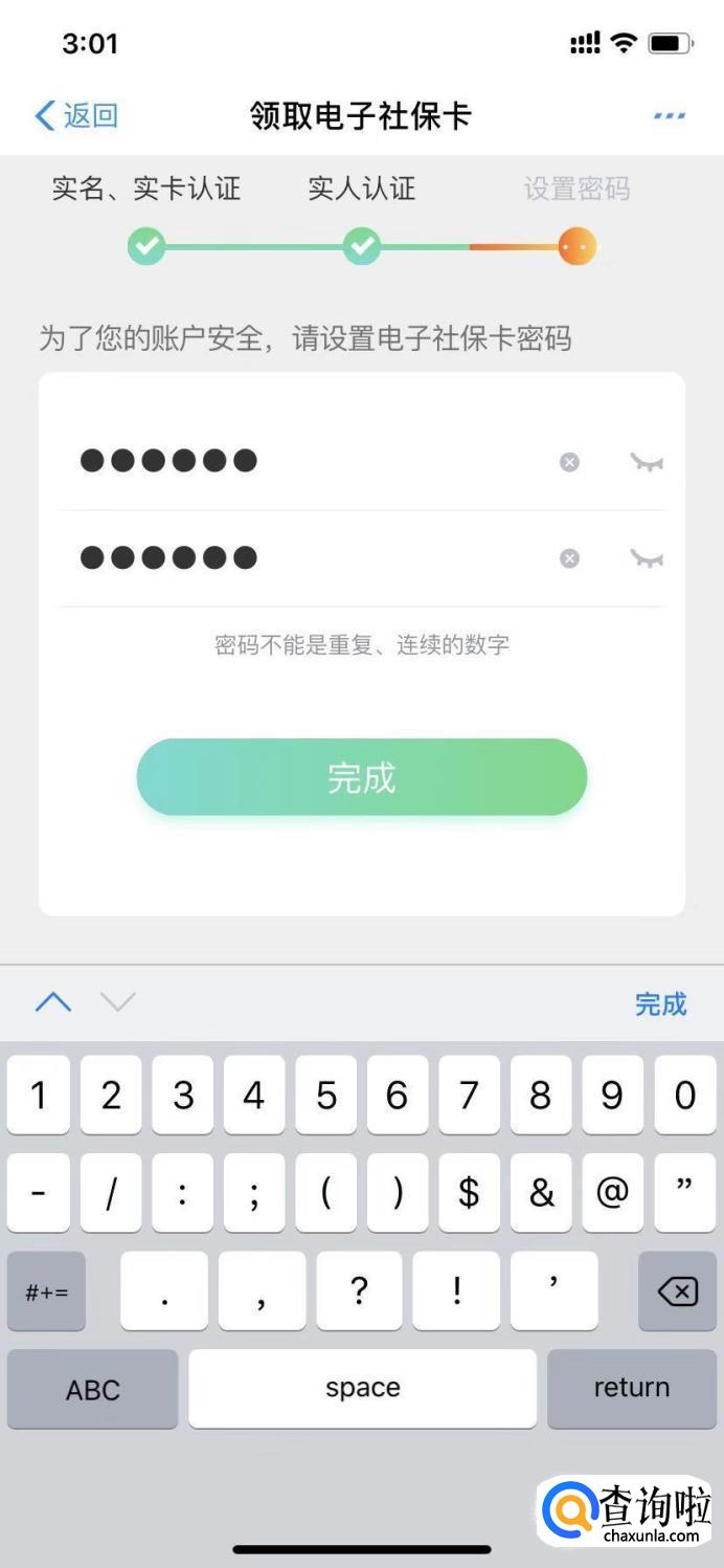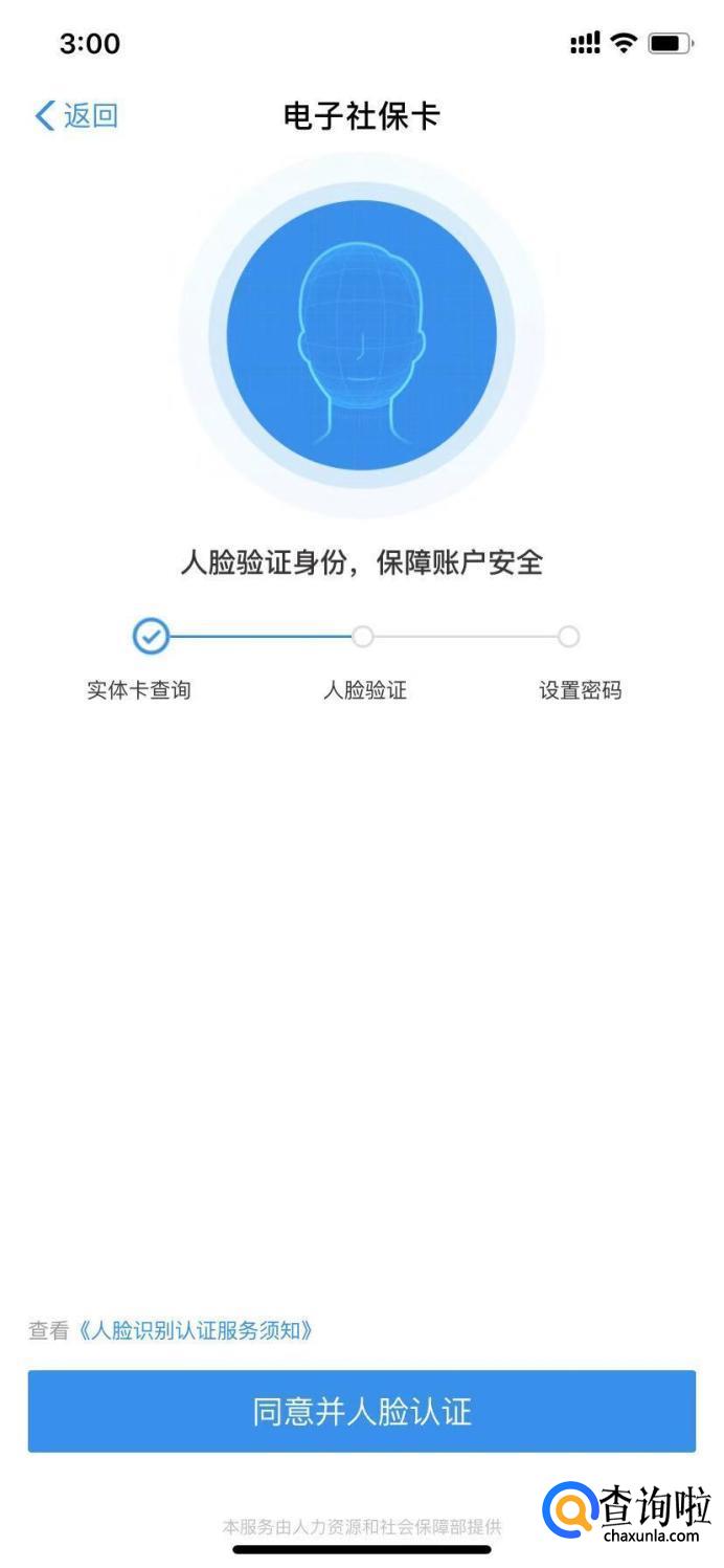 然后系统会查询你是否有实体社保卡,之后会要求你进行人脸验证,设置密码。