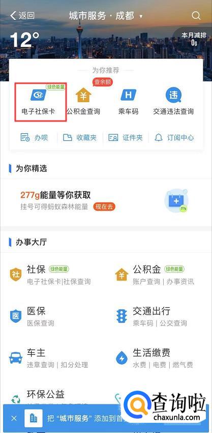 进入城市服务,点击“电子社保卡”。